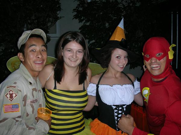 Tucked way in the back, away from the party's chaos, in the darkness by the back gate, four television sets sat stacked on a table, subliminally arranged to resemble the twin towers. A visual onslaught of hearings, seminars and documentaries, with Loose Change providing the only audio and main focus, we provided food for thought to the few that ventured back here. With all the huge and elaborate decorations meant to frighten children but amuse adults, we always have one element at our parties intended to disturb on an adult level.